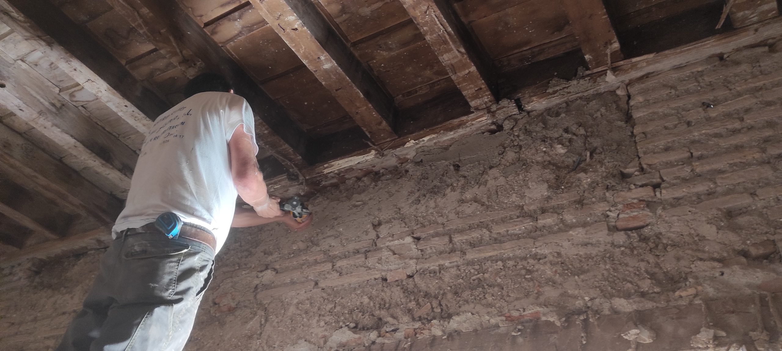 La obra implicó el levantado de toda la solería existente, eliminación de la terminación de todos los acabados interiores de las paredes, de manera que se entresacó a la vista todo el sistema constructivo del inmueble, que estaba formado por elementos de fábrica de ladrillo y muros de tapial. También se sustituyeron todas las carpinterías existentes dado que presentaban un deterioro no recuperable.